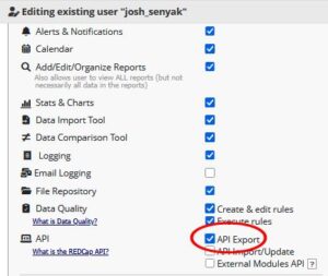 Once the REDCap instruments have been created, you’ll need to ensure that your REDCap project grants you the permissions required to export the data you want.